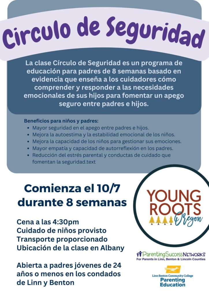 Esta es una clase gratuita y con todo incluido para padres jóvenes desde la adolescencia hasta los 24 años. Las parejas fuera de ese rango de edad son bienvenidas a unirse. Se proporciona transporte para cada clase.